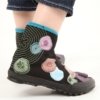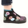 Ces tabi sont confectionnes a partir de toile de coton teinte selon la technique traditionnelle dite de “Kagozome” par l’entreprise Kyoto Montsuki installee depuis plus de cent ans a Kyoto, l’ancienne capital du Japon.