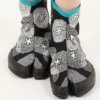 Ces tabi sont confectionnes a partir de toile de coton teinte selon la technique traditionnelle dite de “Kagozome” par l’entreprise Kyoto Montsuki installee depuis plus de cent ans a Kyoto, l’ancienne capital du Japon.