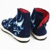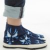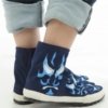 Ces tabi sont confectionnes a partir de toile de coton teinte selon la technique traditionnelle dite de “Kagozome” par l’entreprise Kyoto Montsuki installee depuis plus de cent ans a Kyoto, l’ancienne capital du Japon.